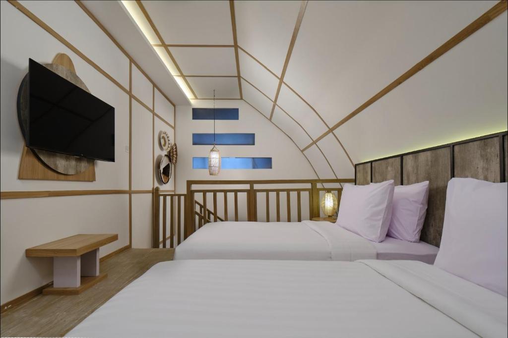 Der er omkring 94 værelser og suiter, inspireret af traditionelle landsbyhuse i området – hver med egen terrasse med udsigt mod strand, have eller pool. Interiøret præsenterer varme trætoner, bløde naturfarver og detaljer inspireret af lokal kunsthåndværk.