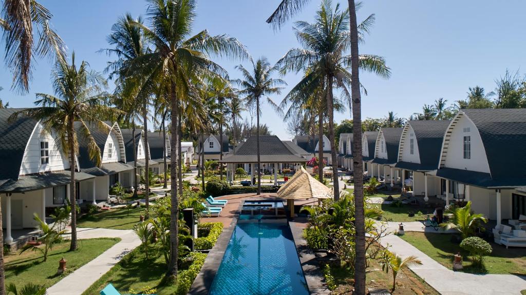 Resortet er opført på privat strandområde omgivet af frodig vegetation og tropiske haver, hvor palmer svajer over gyldent sand og turkis hav. Her mærker I et stilfuldt møde mellem natur og arkitektur – bygninger med rene linjer, naturlige materialer og balinesiske detaljer, som trækker stedets karakter frem. Resortets placering tæt på stranden sikrer, at I kan lade jer indhylde i roen fra havets rytme.