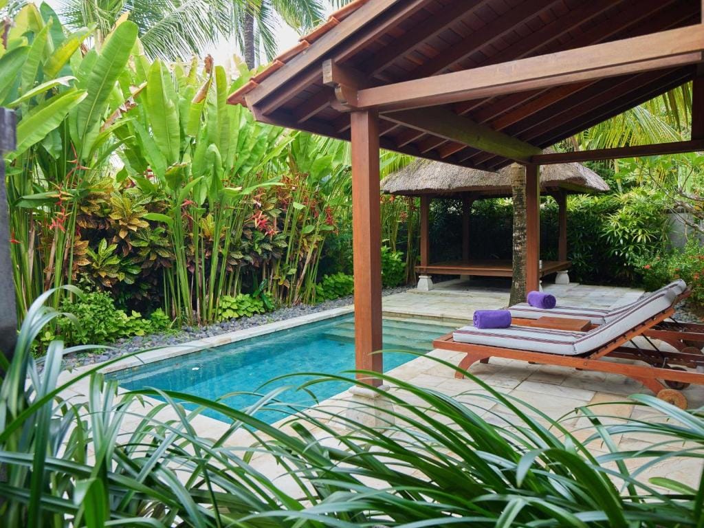 Værelserne er udsmykket med autentiske balinesiske møbler, varme trætoner og accenter fra lokal kunst. Hver enhed byder på balkon eller terrasse med udsigt til tropiske haver eller havet. Nogle suiter har en separat opholdsstue og større terrasser.