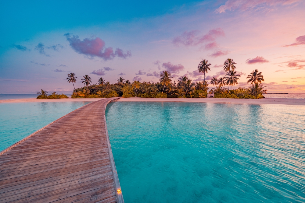 Maldiverne består af hundredvis af små øer, der ligger som spredte perler i Det Indiske Ocean. Øerne er lave og flade, omgivet af laguner og koralrev, hvor havets farver skifter fra turkis til dybblå i takt med solen. Hverdagen følger havets rytme: om morgenen sejler fiskerbåde ud i det stille vand, og dagen glider videre med tidevandet som naturligt ur. På de fleste øer findes kun ét sted at bo, og livet samles derfor omkring få, overskuelige områder. Her kan I vågne med solopgangen, tage en rolig svømmetur, udforske livet under havoverfladen eller blot sidde i skyggen og lade blikket følge horisonten.