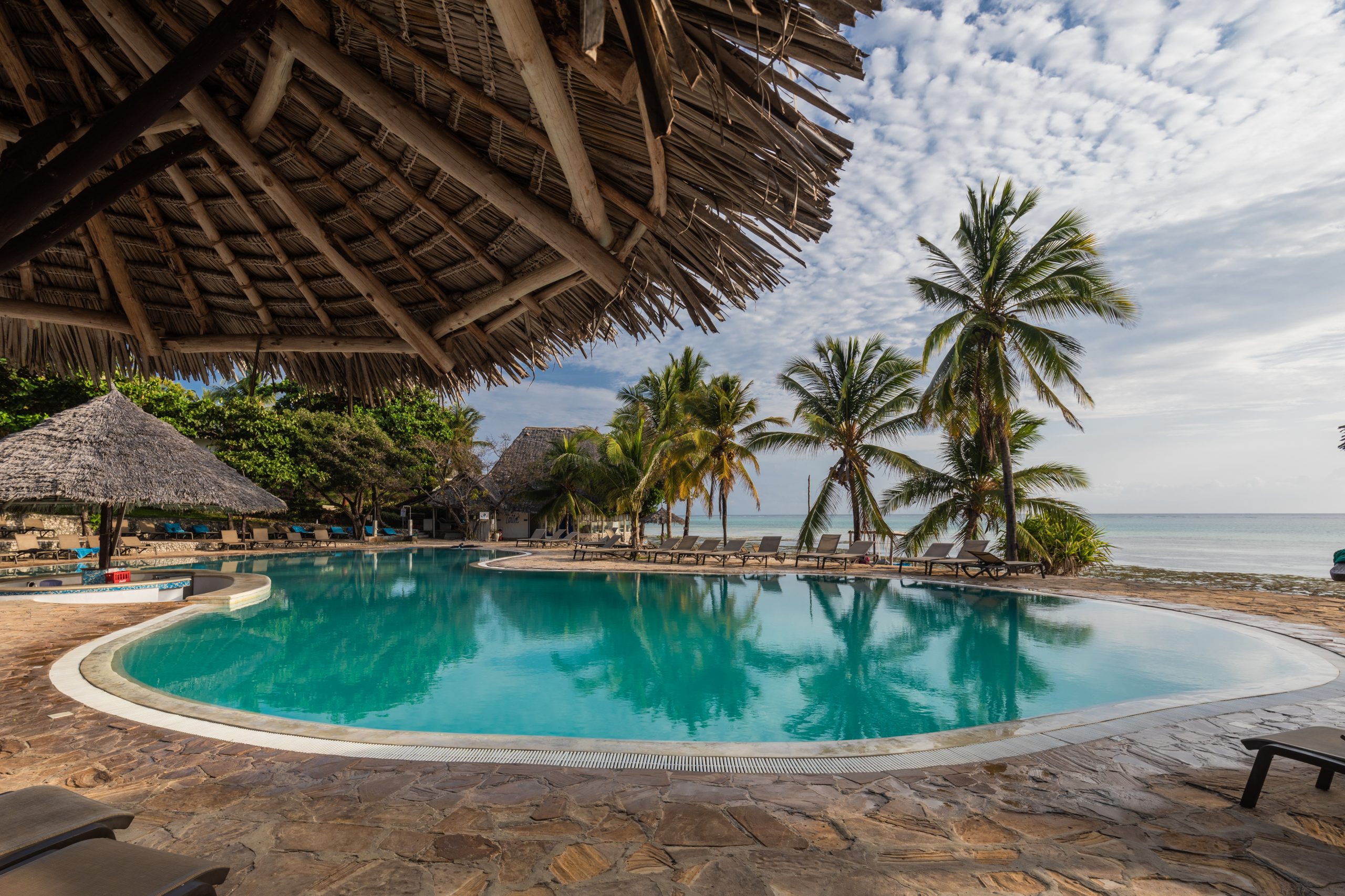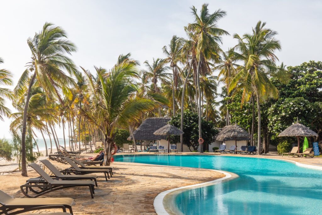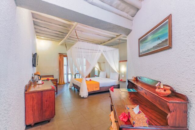 Resortet er bygget i traditionel Zanzibar-stil med stråtage, naturlige materialer og åbne områder, der lader havbrisen køle ned i varmen. Værelser og suiter er rummelige og komfortable med enten have- eller havudsigt, og mange har private terrasser, hvor I kan nyde roen og udsigten.